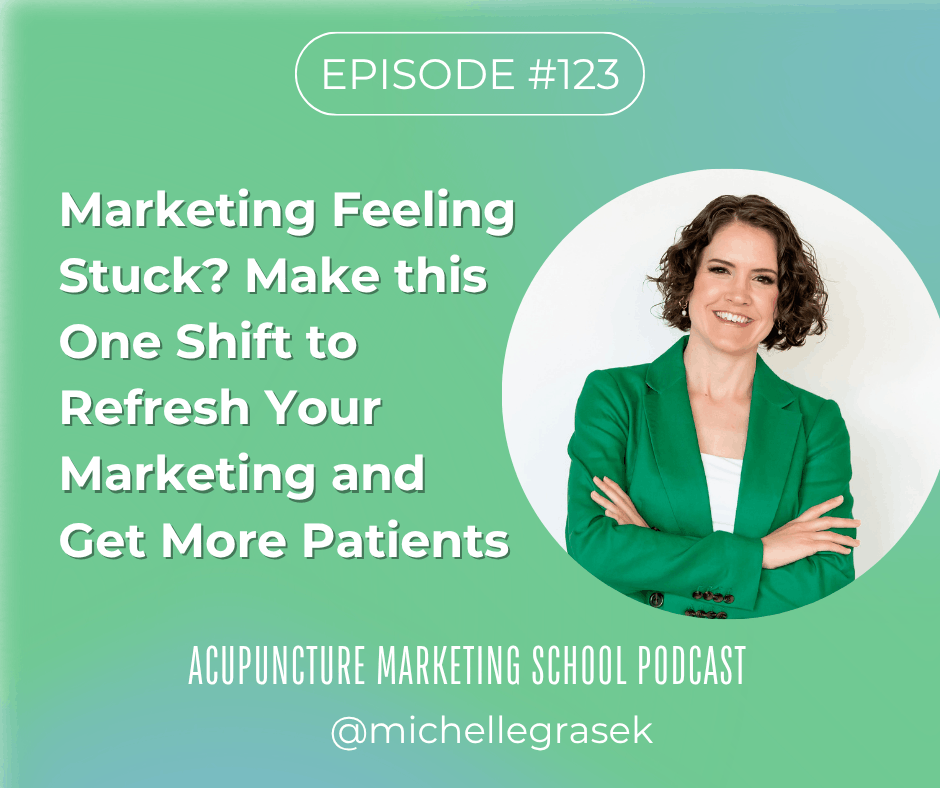 Welcome to the Acupuncture Marketing School podcast. I’m your host, Michelle Grassic, and I’m here to help you get visible in your community. Take marketing action with confidence and get more patients in your practice and more money in your pocket every week. We both know you’re a talented, passionate acupuncturist and that acupuncture has the power to change lives.
